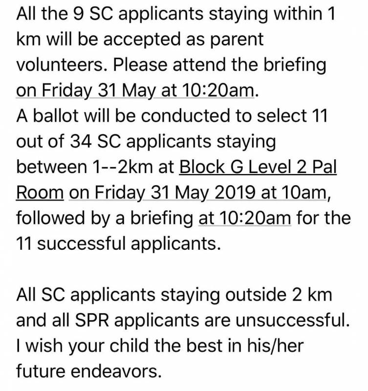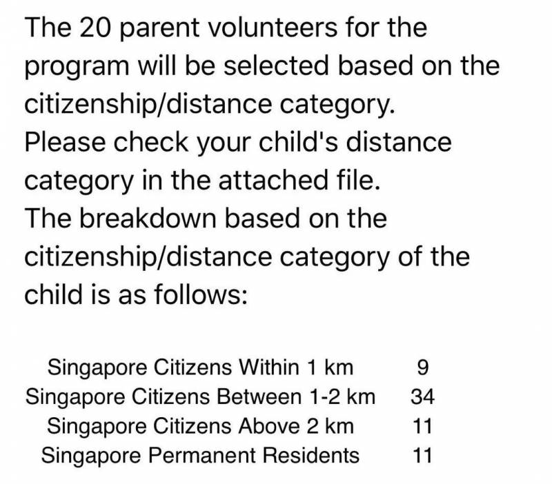 我们的20位义工名额将根据学生的身份/距离的分类进行分配。你可以在附件中查看您孩子属于哪一分类。申请者大致被分为