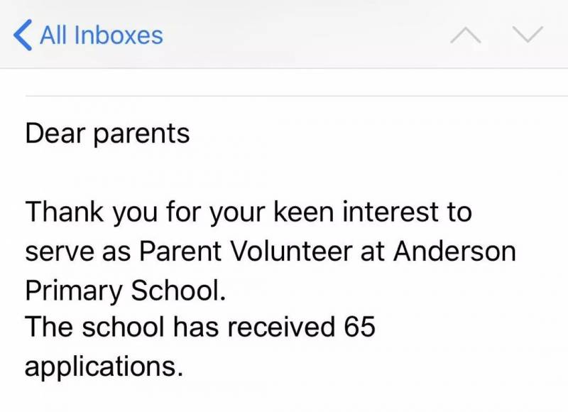 感谢你申请做Anderson小学的家长义工,我们收到了65份申请。