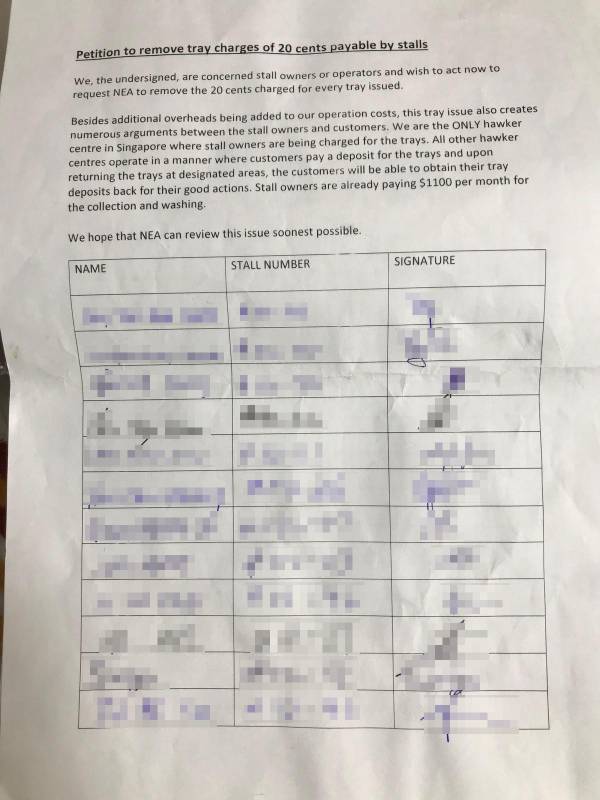 “奖励食客归还托盘”方案让社会企业经营的裕廊西小贩中心的摊贩高喊吃不消。因为得承担支付给食客的费用,每月可能因此增加数百元成本,有至少12名小贩参与了一项联署请愿,希望国家环境局(NEA)能让小贩中心管理单位取消这项措施。