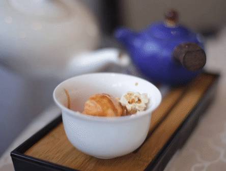 颜值破表的甜品,爆谷泰国奶茶雪糕伴流沙煎堆。上菜的时候,你一定会被这精致古典的小茶壶迷惑,因为真的很有风情。
