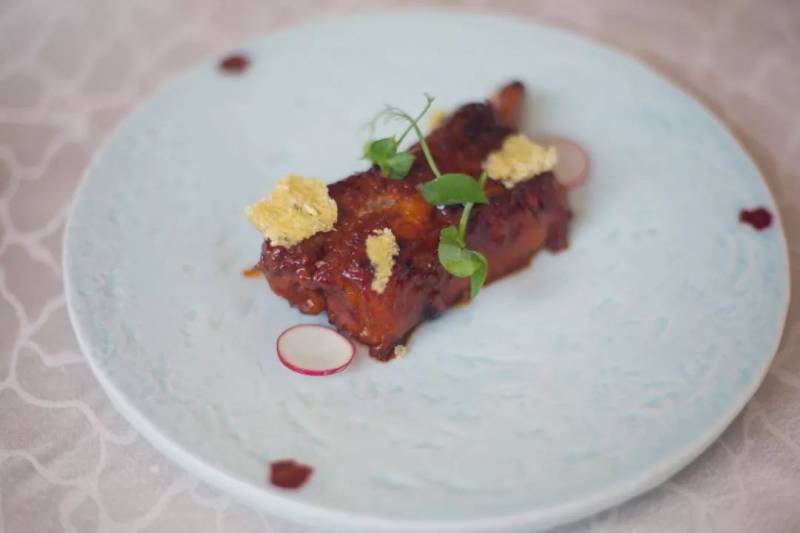 滨华酒店 Marina Mandarin Singapore 的鸿桃轩 Peach Blossoms,年仅35岁的主厨锺健发师傅就善于萃取粤菜中精致优雅的料理手法,与充满的摆盘设计相结合,炮制出如身临剧场一般令人惊艳的现代粤菜料理。