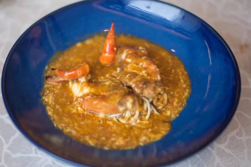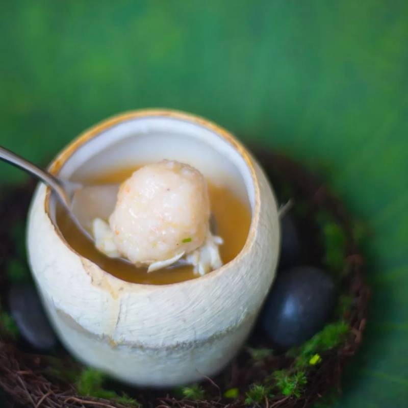 乌打的呈现方式有些不同,是包裹在虾球里的。汤底味道浓郁,完美集合了柠檬草的香气与椰子的甜味。