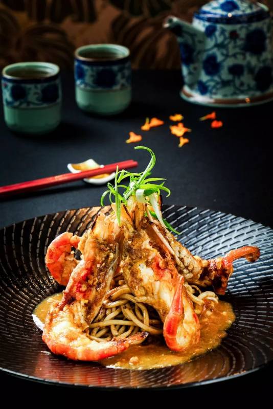 最喜欢的一道菜要数这道XO香煎大头虾扒鱼茸面(S$36),因为不管是味道还是口感,都让人一试难忘。做为主食,这道鱼茸面非常精致。