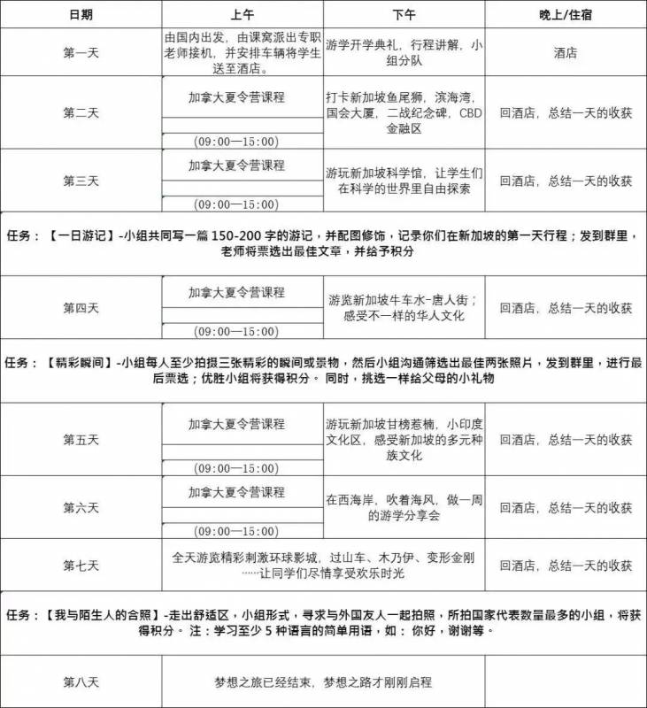 由国内出发,飞往新加坡,由专职老师接机,并安排车辆将学生们送至酒店。