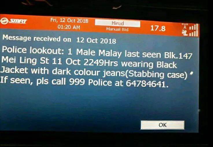 网络上也流传着警方发布给德士司机的搜捕讯息,包括嫌犯的外貌和种族信息,呼吁司机们也帮忙留意此人。