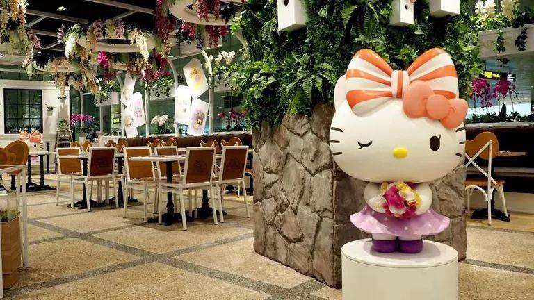 Hello Kitty Orchid Garden Café吉蒂猫胡姬花园咖啡馆是新加坡首个以hello kitty为主题的咖啡馆,在2016年5月12日开幕时,咖啡馆外大排长龙。