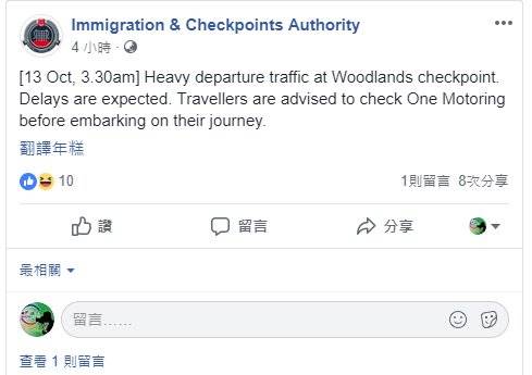新加坡移民与关卡局也于凌晨3时30分发贴,指兀兰关卡严重塞车,促请旅者出门前先查看One Motoring交通清况。