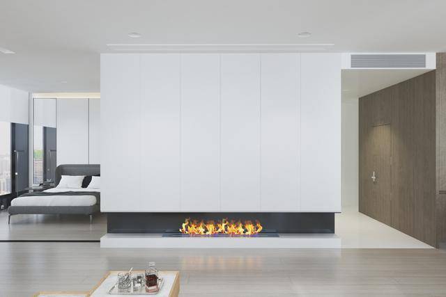 定制储物柜,嵌入点睛的壁炉,作为居室的中心,又留出一片收纳空间。
