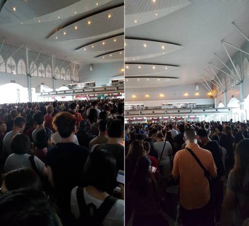 据了解,大马新人行人通关处,于下午约4时,便出现大批人潮,由于通关动作缓慢,排队人潮更忍不住鼓噪,有者嘘叫,有人比不雅手势,更有人比胜利手势。