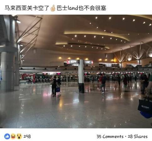 另一方面路,除了严重的塞车和塞人,网民吐嘈关卡竟还漏水,天花板处的水如雨般流下,地上一片湿漉漉,促请步行的民众小心地滑。