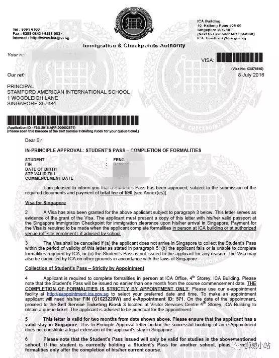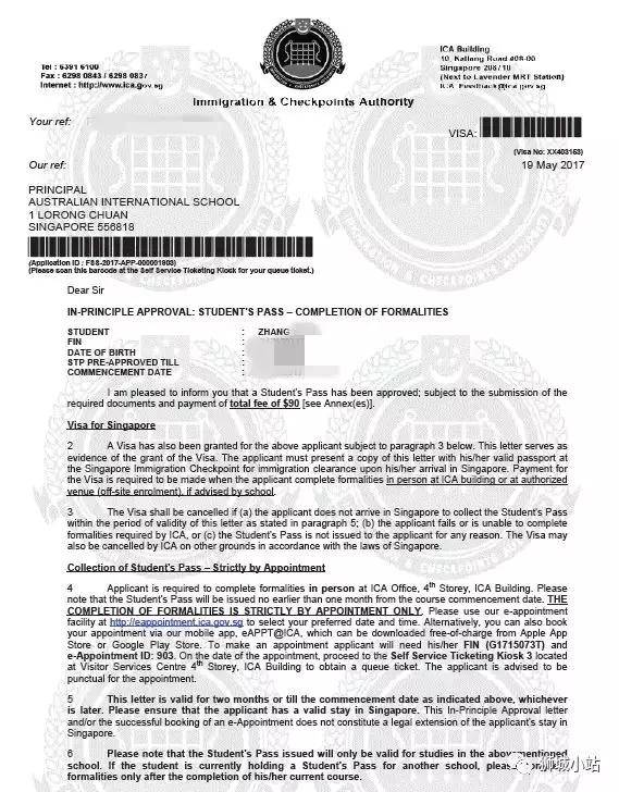 新加坡美国国际学校入境批文