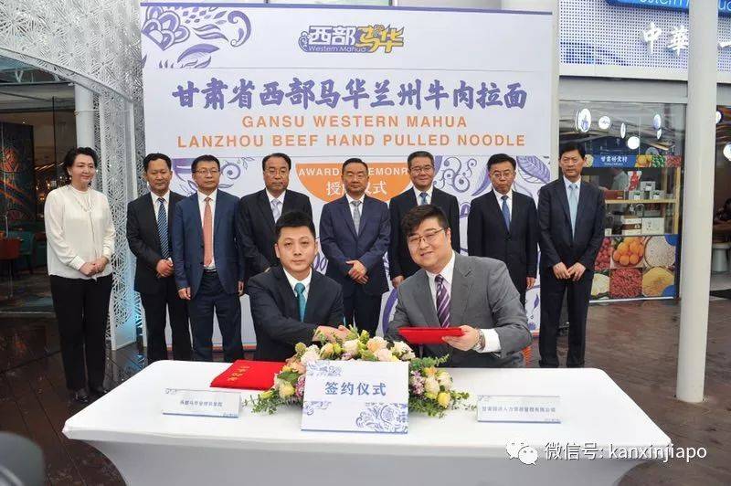 5月8日甘肃省省长唐仁健率领甘肃省商务代表团一行,来到新加坡Vivo City(怡丰城)西部马华餐厅出席了“甘肃省西部马华牛肉拉面”授牌仪式和人力资源的签约仪式。