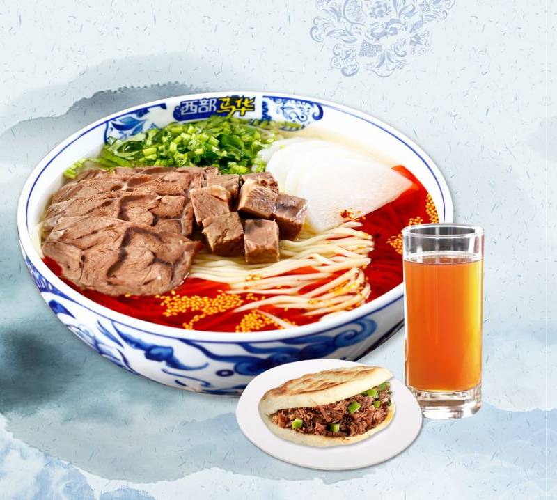 招牌骨汤牛肉面+精品煨牛肉夹馍+敦煌李广杏皮茶套餐