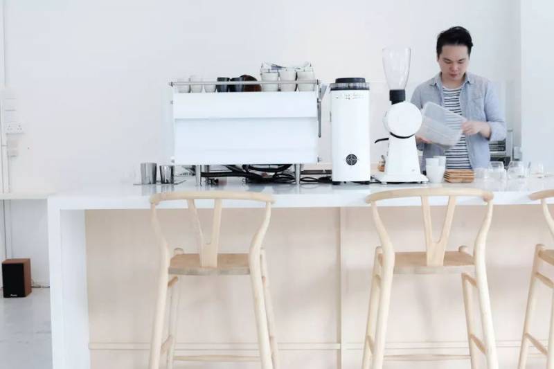 台面是白的,咖啡机是白的,磨豆机是白的,杯子也是白的,白的让人想发呆想放空。
