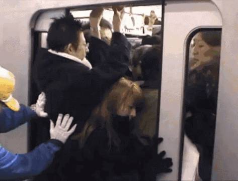 首先,你要努力地在地铁上的乘客中间穿行到达出口,然后,你还要勇敢地面对想要挤上车的乘客,途中可能会受到数次肘击和肩膀撞击!好痛!但是又无从申诉,只能默默憋著……毕竟,人多怪谁呢?大家都是在为了生活奔波啊,消消气,消消气!