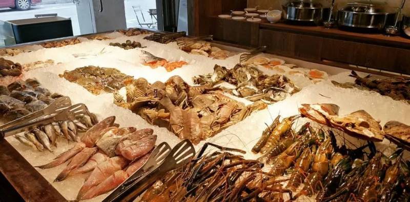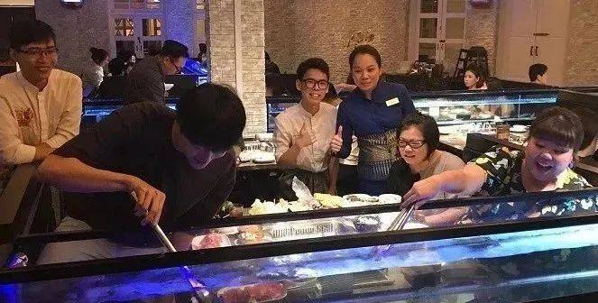 新鲜打捞上来的各色海产品,“井然有序”地陈列在自助货架上,没错!这是一家海鲜自助餐厅哈~