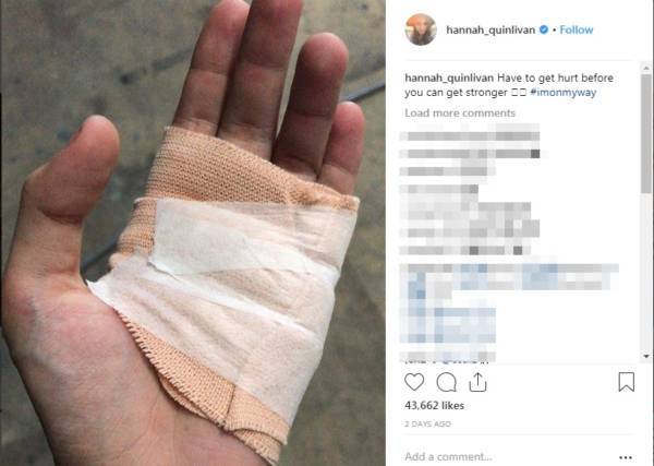 昆凌在贴文写着“Have to get hurt before you can get stronger”,意指在变强壮之前必须受点伤。