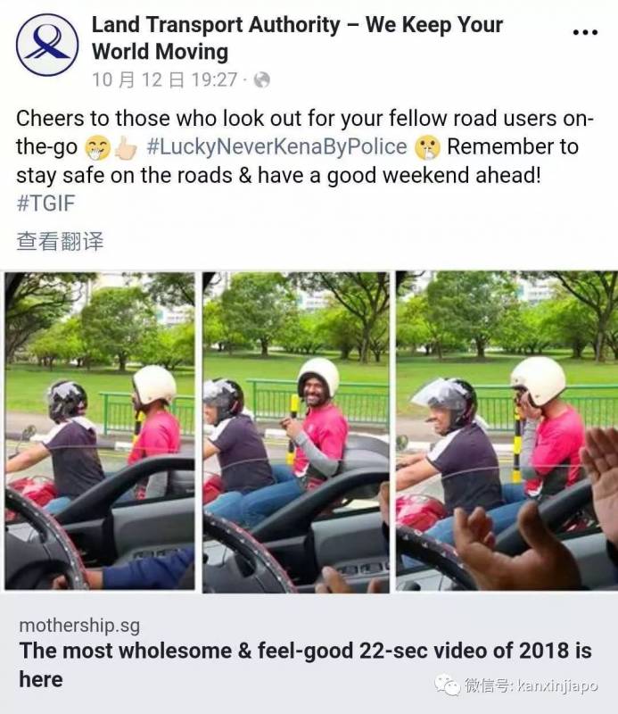 这段视频被传到网上后,被疯狂传播,仅两天就有490万浏览量。它也成功吸引了LTA本尊的关注,官方po脸书表扬了视频中善意提醒的行为,还趁机提醒公众多注意安全。