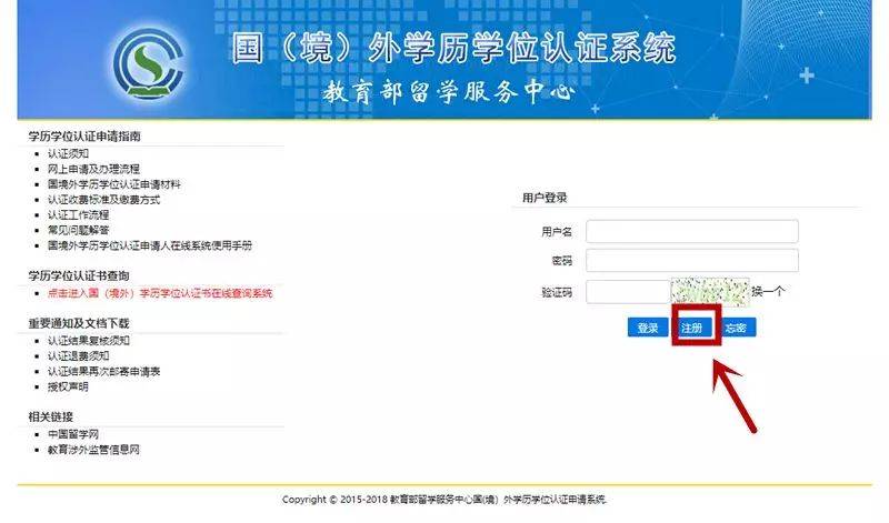 1.登录国(境)外学历学位认证系统首页,点击页面右册的“注册”,进入注册界面
