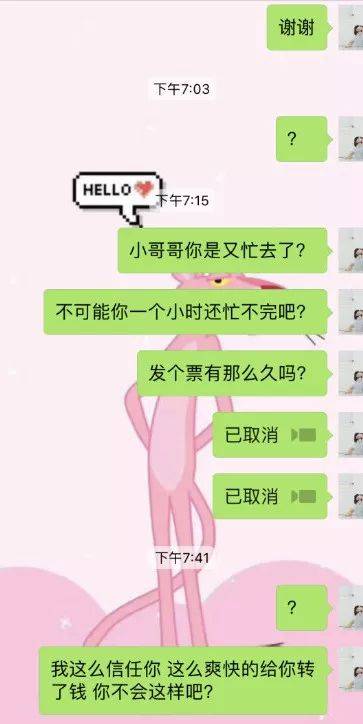 后来,原本秒回的他半个小时都没了声音,最后回了我一句说公司给他打电话,马上就发电子票给我。再然后他就蒸发了,没有了声音!