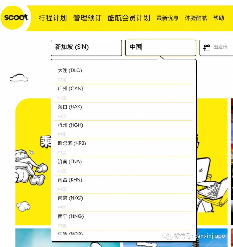 光看看酷航的,一搜中国就会出来许多二三线城市: