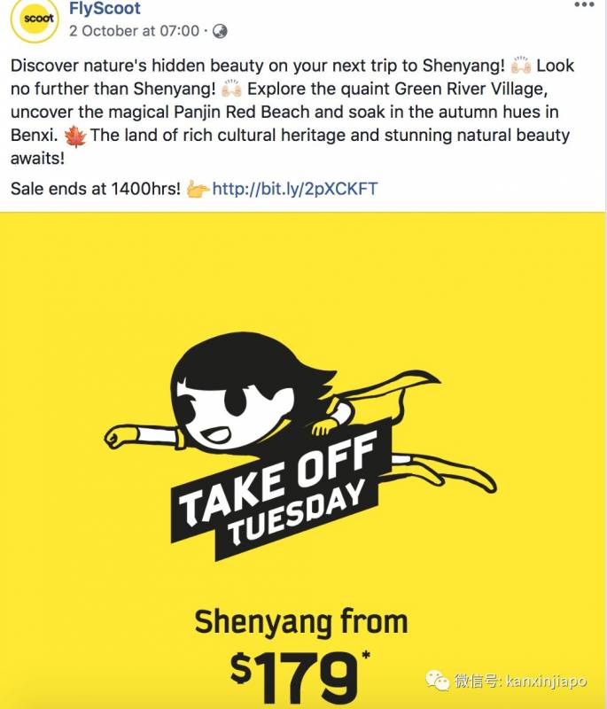 2、把握优惠促销活动:廉价航空公司非常热衷于搞各种“机票促销”活动。比如酷航每周二早上都有“早鸟促销”,经常会有半价甚至更大折扣的机票放出。或是偶尔蹭个什么热点,也来一波降价~但促销活动时间很短,请小伙伴们随时保持关注!