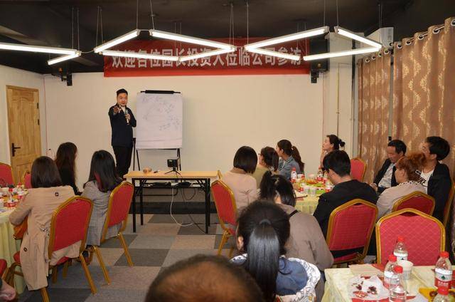 随后我们组织加盟商嘉宾会议开始,邀请嘉宾和黄国强先生、毛羽先生互动,更深刻的了解品牌,并探讨园所发展问题。