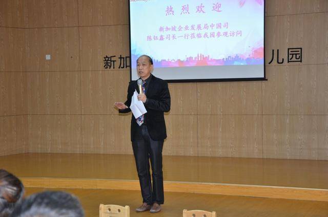 新加坡品格蒙特梭利董事长黄国强先生致辞向陈司长的访问表示感谢,鼓励嘉许幼儿园所有老师辛勤的付出及努力,向嘉宾们讲述了品格蒙特梭利在中国的多年发展历程,并对品牌的未来发展进行了展望。