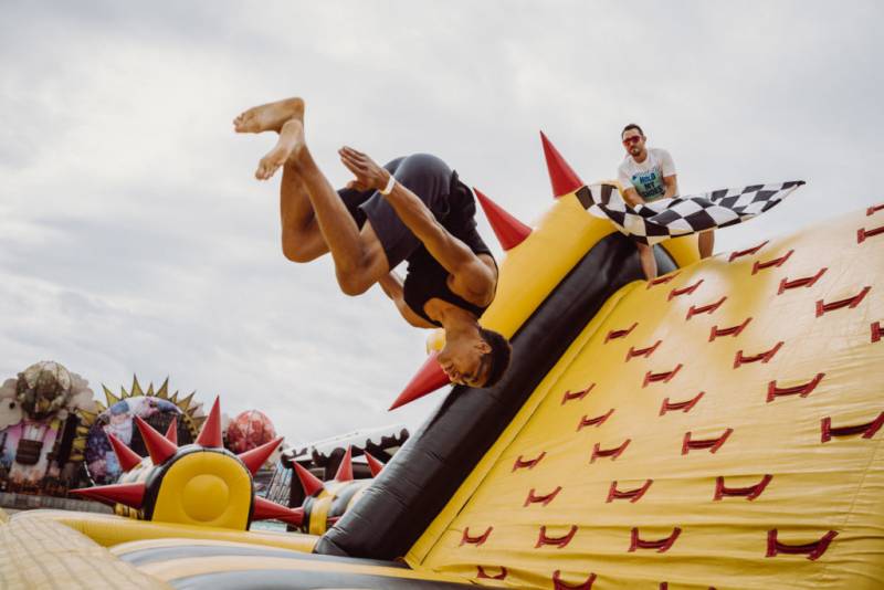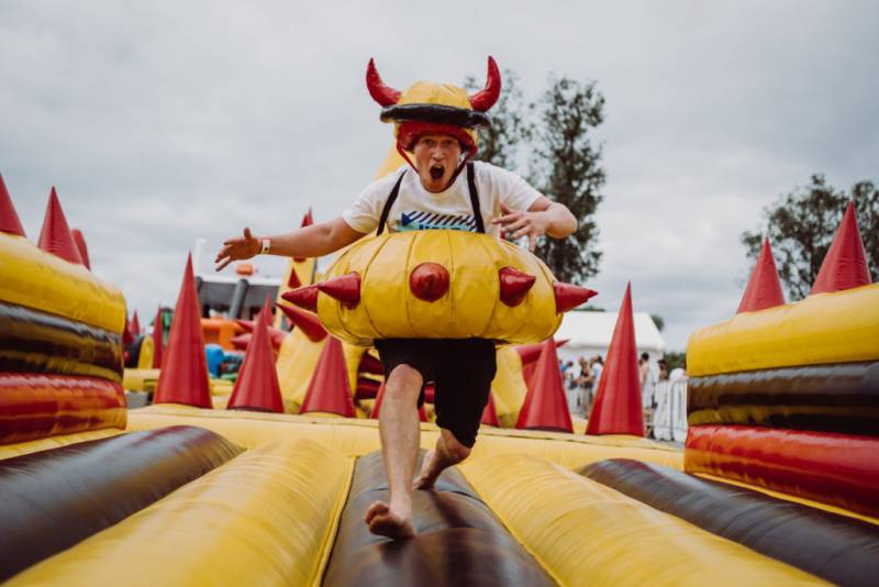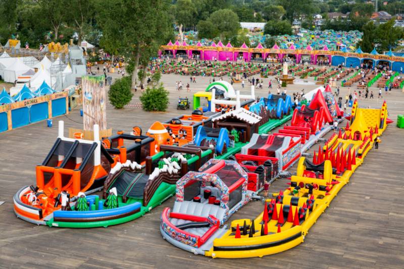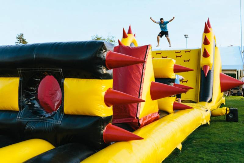 全长252米的巨型障碍充气跑道