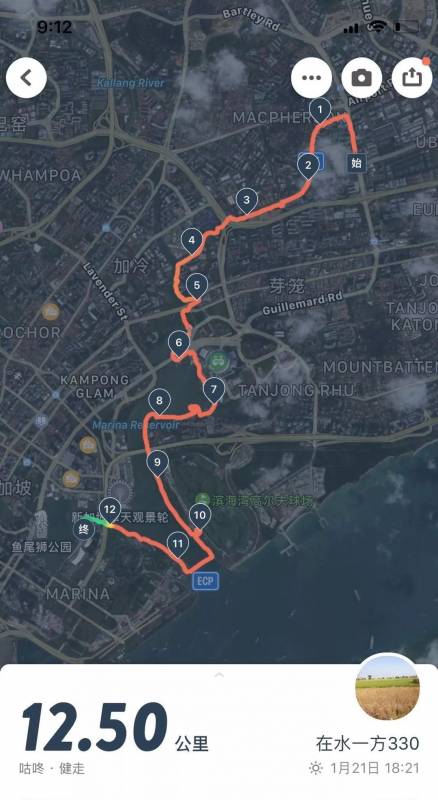 Heading out from the Macpherson MRT station (CC10/DT26) Exit A, turn left after we have finished taking group photos. (Remember to open you GuDong)We will walk along the Paya Lebar Road,turn left after walking 0.61km and then walk along the river. There is a small bridge, After reaching Aljunied road at about 2.45km, pass the bridge and continue hiking along the river. Cross the expressway through the overpass at about 3.18km and continue to walk along the river.We will then walk along the street behind the Kallang bus interchange and continue to walk along the river, then take a rest after hiking about 5km.Continue to walk along the river, walkpass the stadium, Marina barrage and reach Marina Bay Sands.