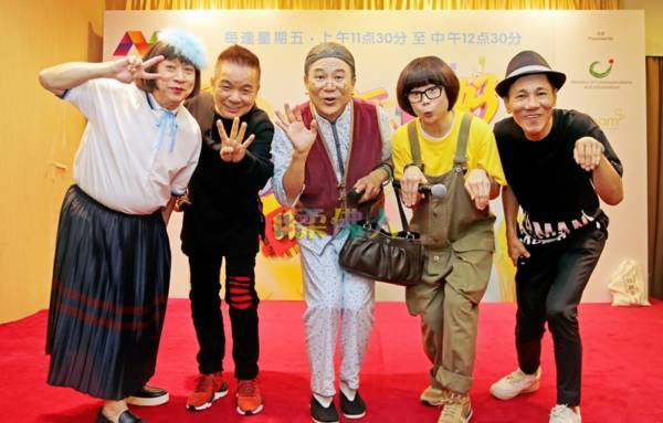 辉哥(左起)、陈建彬、梁志强、何爱玲和王雷今早出席了《欢喜就好4》记者会。