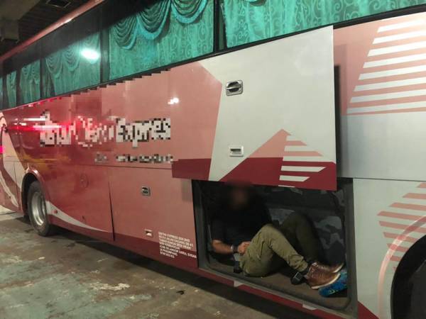 广告移民与关卡局人员觉得事有蹊跷,于是仔细检查巴士,发现一名男子藏在行李隔间里面。