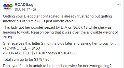 通常陆路交通管理局在没收不符合规格的电动滑板车之后,是不会收取仓储费的。