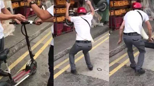 一名男子因在公路上违规骑行,被执法人员当场拦下,先是争执了一段时间,后来该男子不服,手举著电动滑板车,并且重重在地上摔了两次。