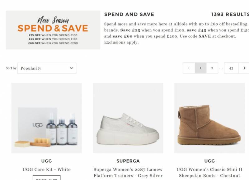2.all sole 精选服饰鞋包 阶梯满减 最高减60英镑