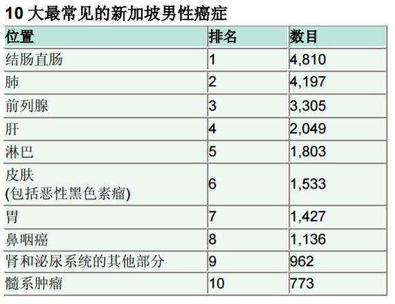 在新加坡生活压力大,常常饮食不正常,常常有一餐没有一餐的。所以现在有个报告指出结肠直肠癌(又称大肠癌)是新加坡最常见的癌症,它在新加坡男性癌症病例中排行第一,在女性癌症病例中排名第二。