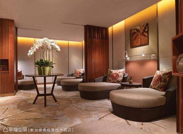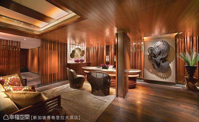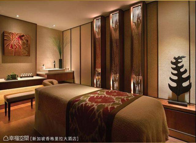 新加坡的CHI SPA以带有中国禅味的南洋风格规划,善用材质的规律变化营造休闲感受,木质的天地间,疏密有致粗细错落的木格栅,铺陈空间立面的段落及延续,灯光照射在禅意的艺术端景上,不刺眼的间接照明,因艺品的光影而添了诗意;由双人空间到单人包厢,甚至是SPA完的休息区,以舒适为出发的机能配置,精算过使用适宜的高度与私密性,为贴心至致的舒压设计。