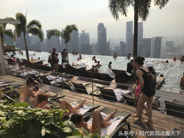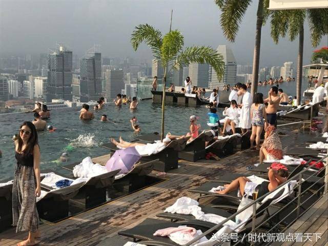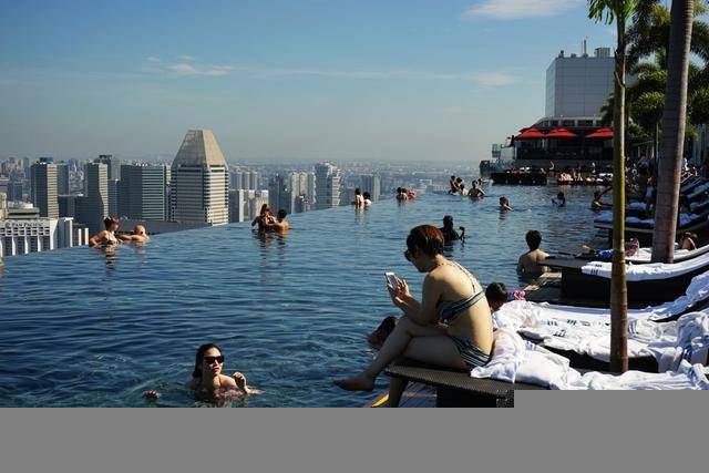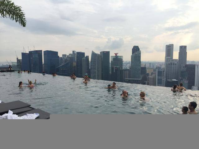 无边游泳池位于酒店57层,高度是198米,新加坡大半个城市的景色一览无余,似乎让你有种错乱感,这是一种新的体验。
