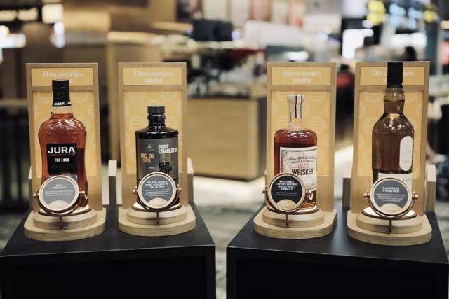 快闪店内的威士忌被分为Discovery湛新探索、Rare Finds珍惜典藏、Specialities独门精酿、Classics经典永恒四类,代表着DFS新加坡樟宜机场店所拥有的威士忌酒款类型。