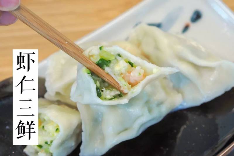 虾仁三鲜可以说是让我们惊艳的一款海鲜水饺。鲜虾仁搭配黄瓜,黄瓜的清甜搭配虾仁的鲜,一咬开都是满满的鲜甜汁水,清甜而不腻。