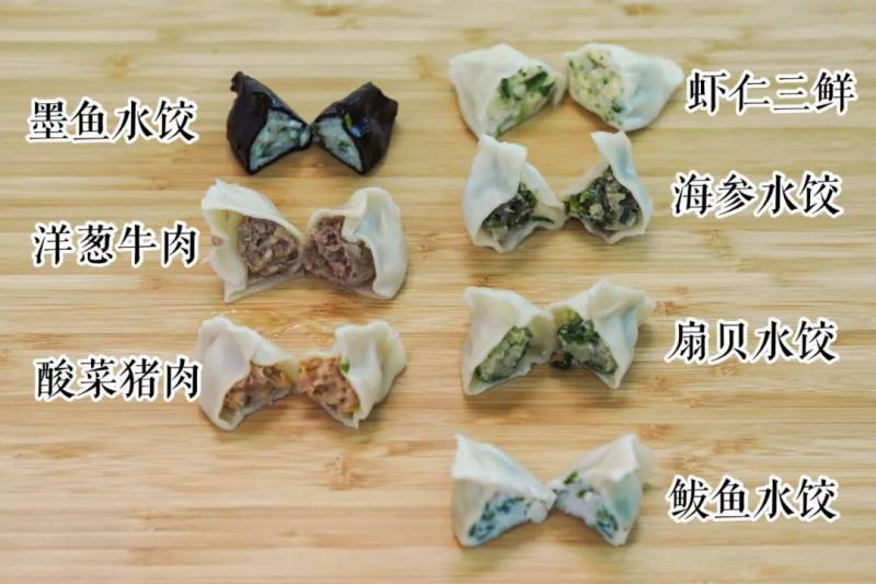 永乐水饺的这五款海鲜水饺,包括了最有名的鲅鱼水饺、墨鱼水饺,还有鲜甜的扇贝水饺和虾仁三鲜,以及土豪款海参水饺。