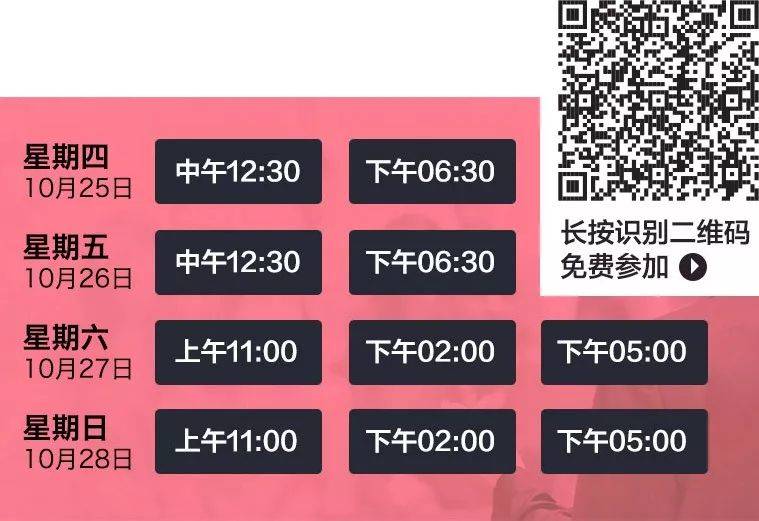 欢迎您于10月25至28日 (下周四至周日)
