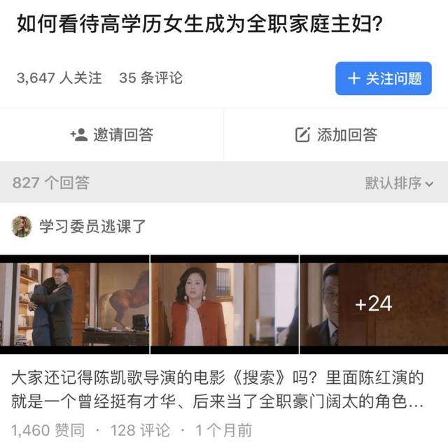 知乎里一个关于“如何看待高学历女生成为全职家庭主妇”问题下的827个回答就足以证明这个话题在当下的热度。全心为家庭付出能不能得到尊重,是不是对教育资源的浪费,会不会对女性的社会地位产生影响…这些潜在的危险都让抉择中的女性辗转反侧。