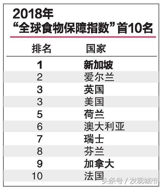 由《经济学人》信息部(Economist Intelligence Unit)发布的2018年“全球食物保障指数”(Global Food Security Index)报告,对113个国家的食物保障水平进行评估。