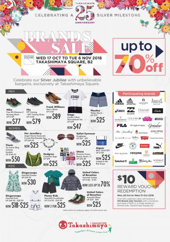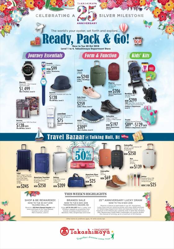 10.18 新加坡优惠合辑 | Takashimaya多品牌联合促销低至3折,旅行用品5折;RELLUZO大牌包袋清仓甩卖;美罗全场8折,无需会员卡;伊势丹床品特卖;BHG Expo特卖低至2折