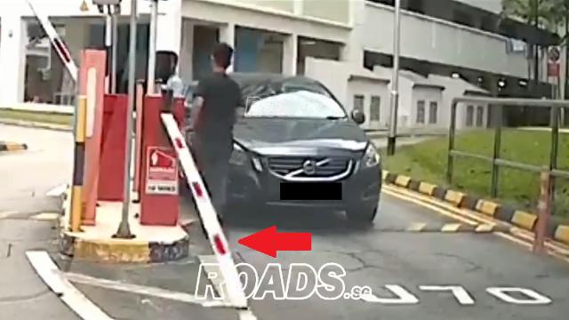 据Marie K.向Roads.sg的Facebook页面提供的行车记录器画面显示,一名男子站在停车场出口处,和一名刚好要进入停车场的汽车司机对话。之后,他直接用手举起了停车场出口处的闸杆。视频中可见闸杆的一些部件随之掉落。