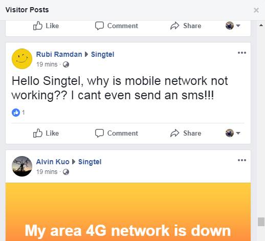 新电信用户在新电信Facebook页面留言,申诉电话没有信号。(照片:截图/ Singtel Facebook)