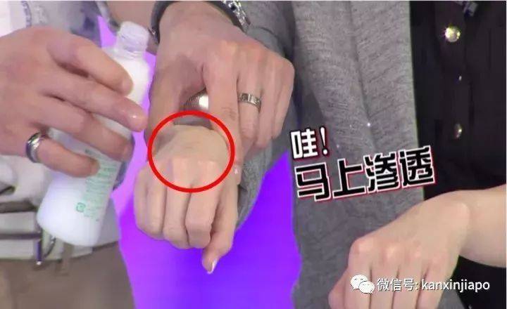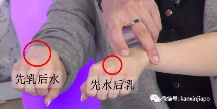 担心这是电视效果,那就让我们再来看一下在新加坡奥碧虹专柜的实测,擦渗透乳和不擦渗透乳还是有区别的: