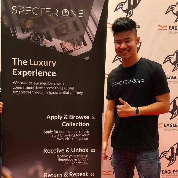 Sendi Heng是新加坡新跃动社科大学的在校学生,去年看准了名表共享的创业机会,果断退学创业,成立了新的共享手表公司Specter One!他认为年轻人经济实力有限,但是喜爱名贵手表,市场需求很大。