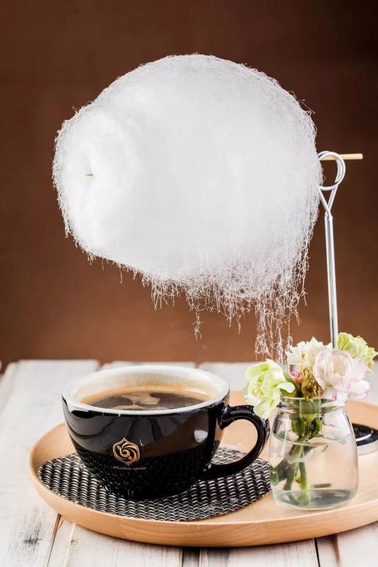 如果说Ondeh Latte算是一种创新,那Little Sweet Rain就是一种趣味咖啡喝法。底部是一杯浓缩黑咖啡,上面是一大团棉花糖,随着咖啡的热气棉花糖就会慢慢融化滴进咖啡里。整个过程看的少女心炸裂,滴下来的糖丝因为地球引力滴进了那杯等待甜蜜的苦咖啡。